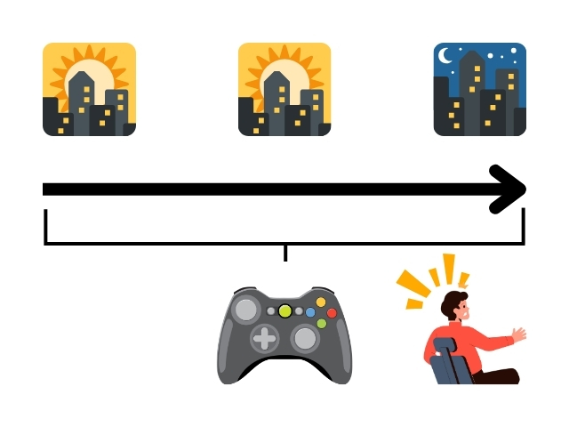 ⇒ This indicates that the speaker was playing a game and didn’t realize it had become nighttime.