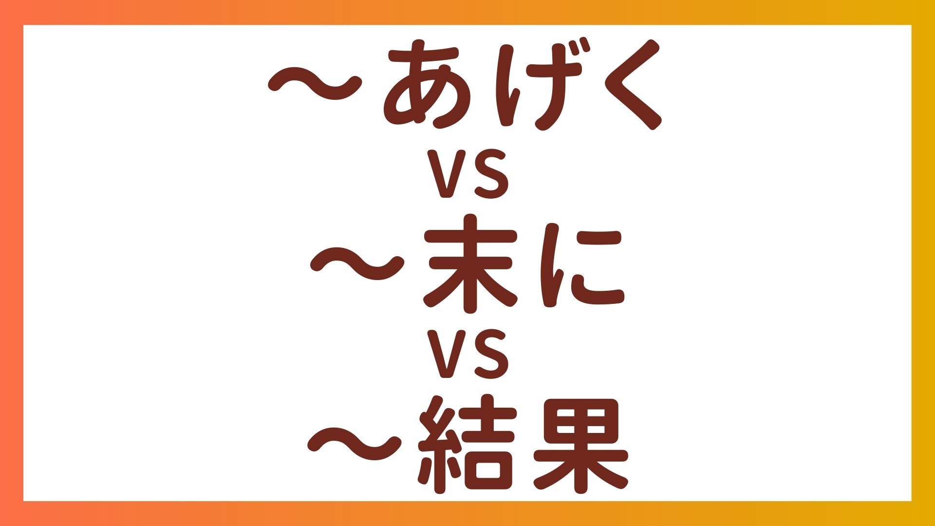 - JLPT N2・N3 Grammar – The difference between “〜あげく” “〜末に” and “〜結果”