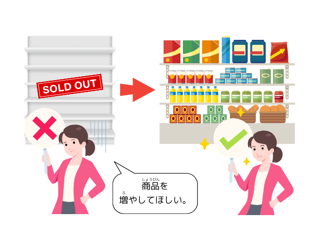 ⇒ 客户的要求是“希望增加商品”,说话者实现了这一要求